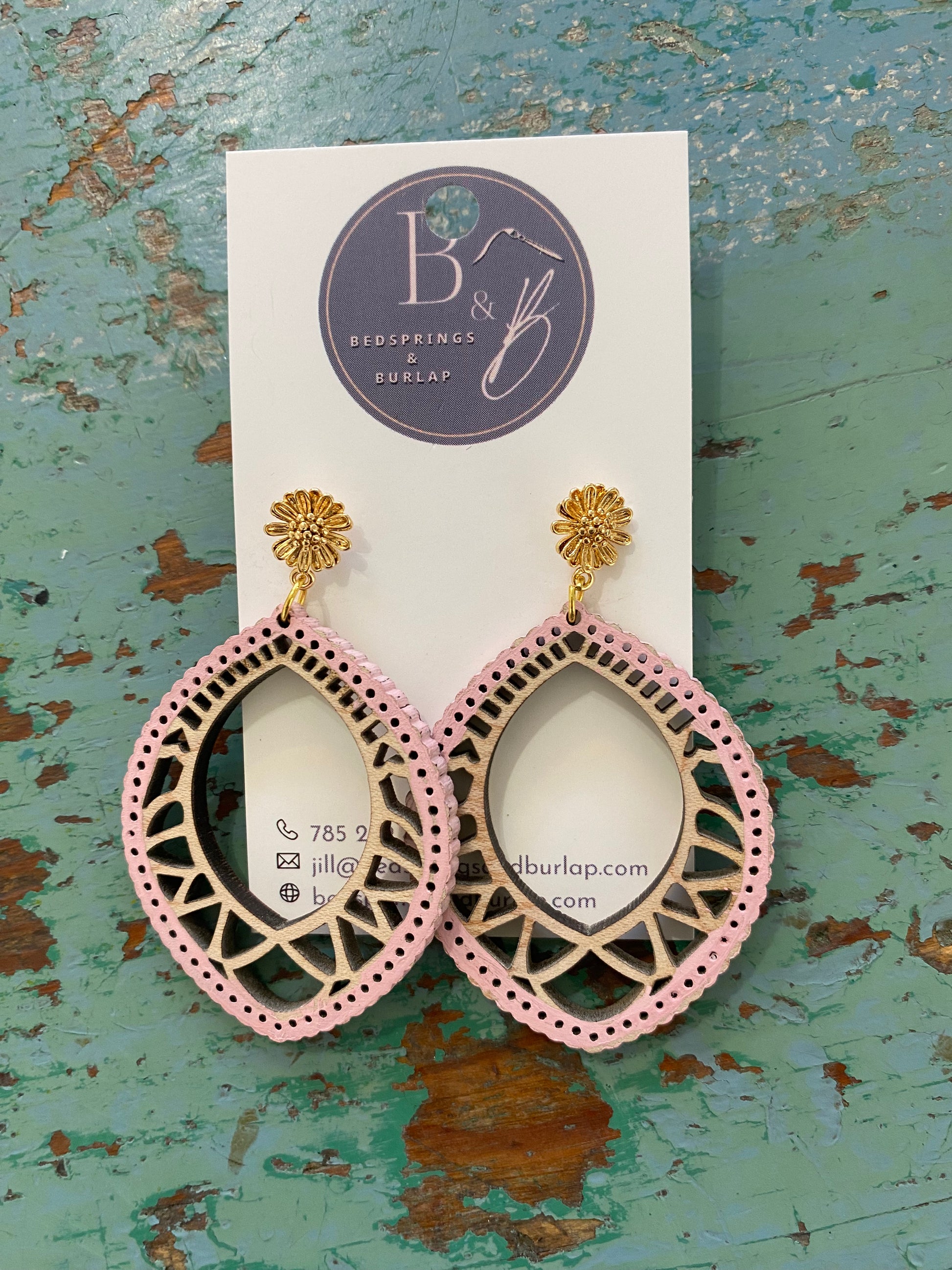 B&B Wood Design Earrings-Pink