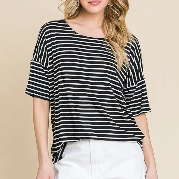 Casual Short Sleeve Stripe Top