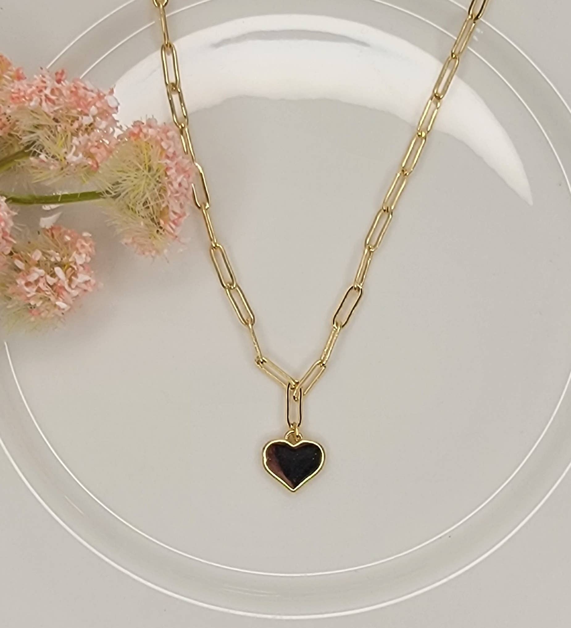 LINK CHAIN WITH HEART PENDANT NECKLACE. MATERIAL: LEAD & NICKEL FREE. LENGTH: 3/8" WIDTH: 3/8" CHAIN: 19”