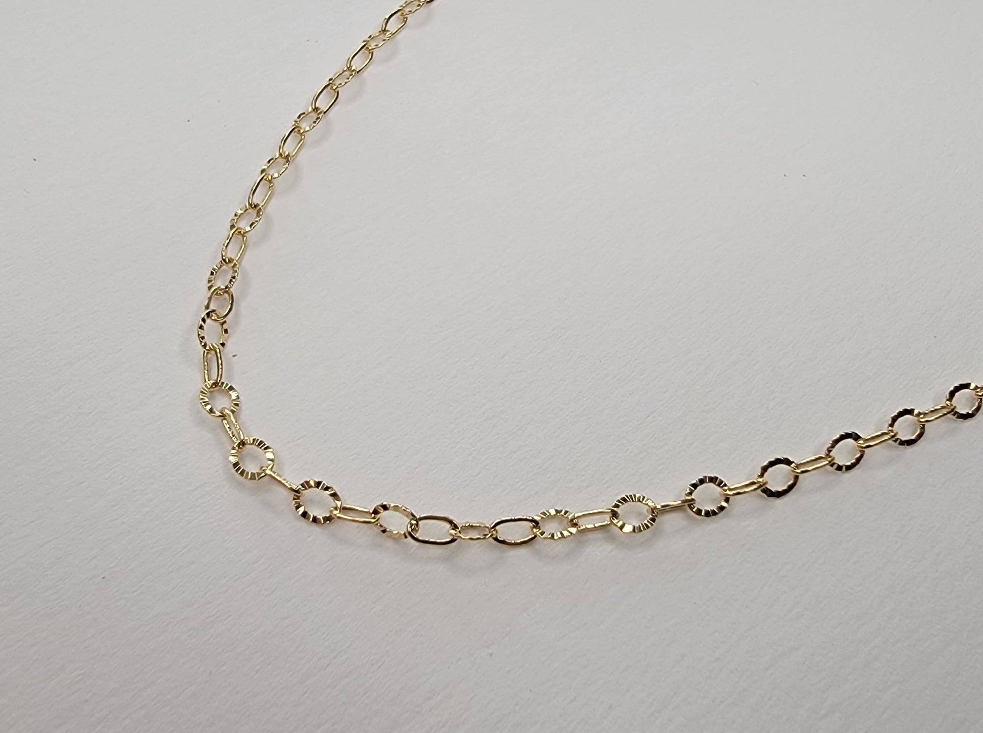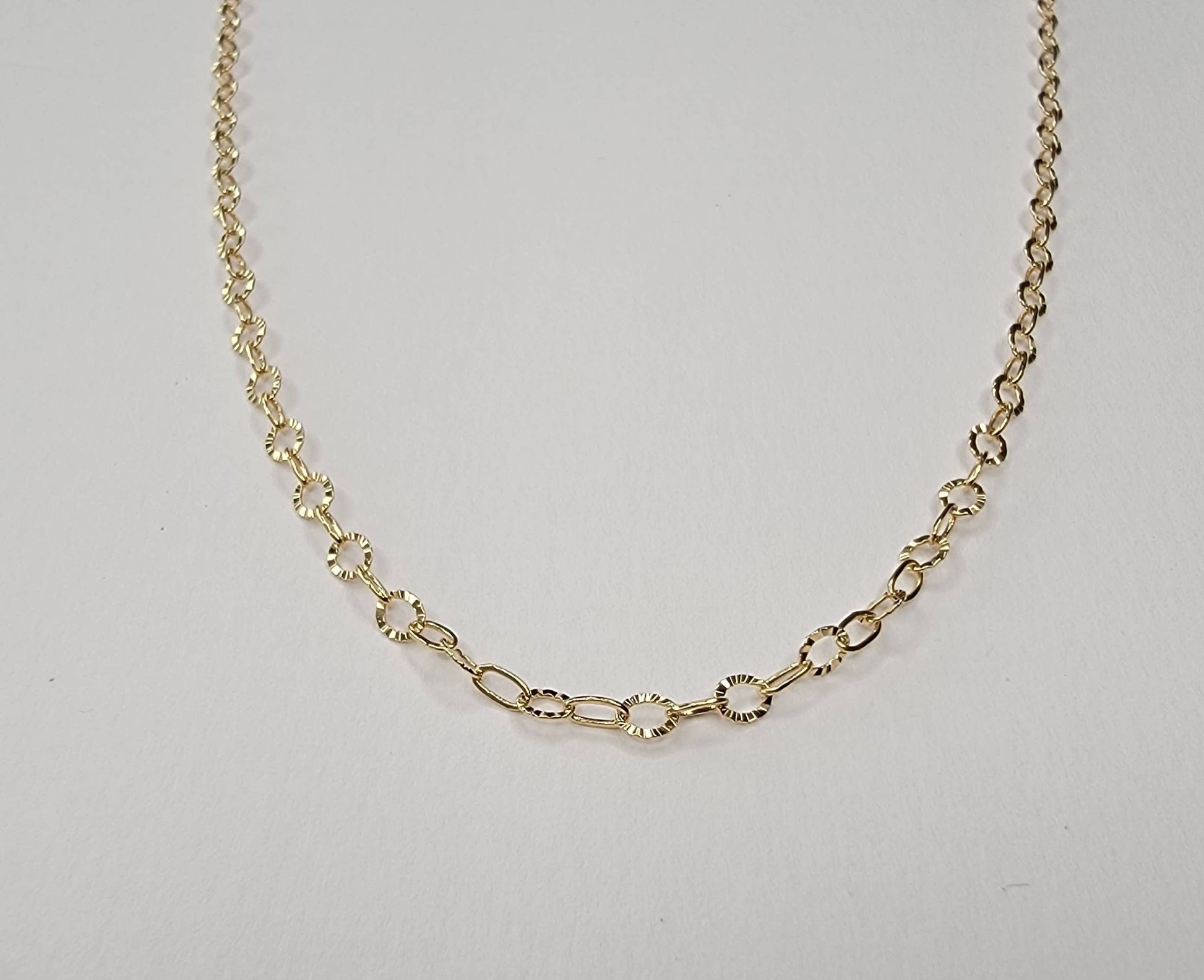 MINI LAZER CUT LINK CHAIN NECKLACE. MATERIAL: LEAD & NICKEL FREE. CHAIN LENGTH: 19 1/4" WIDTH: 1/8"