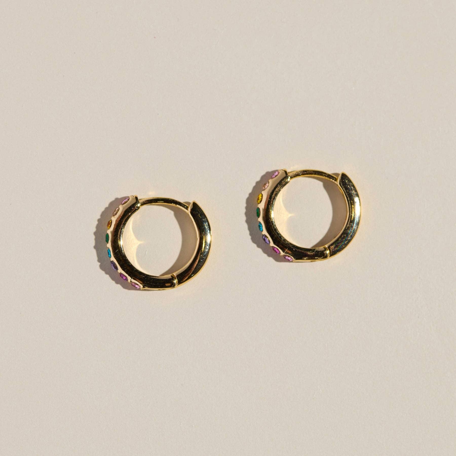 Nickel & Suede - The Rainbow Pavé Huggies are a small silver hoop earring that fits closely to the ear. Our Rainbow Pavé Huggies feature a pavé Cubic Zirconia to add an effortless bejeweled accent to any look.