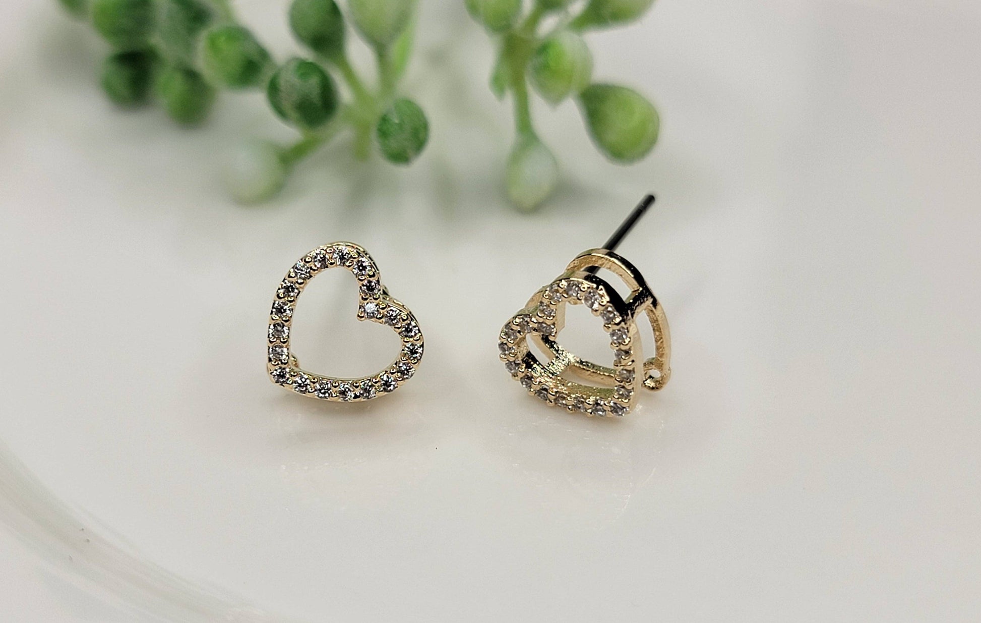 Dainty Heart earrings: titanium post, cubic zirconia, rhodium plated, lead & nickle free. post earring